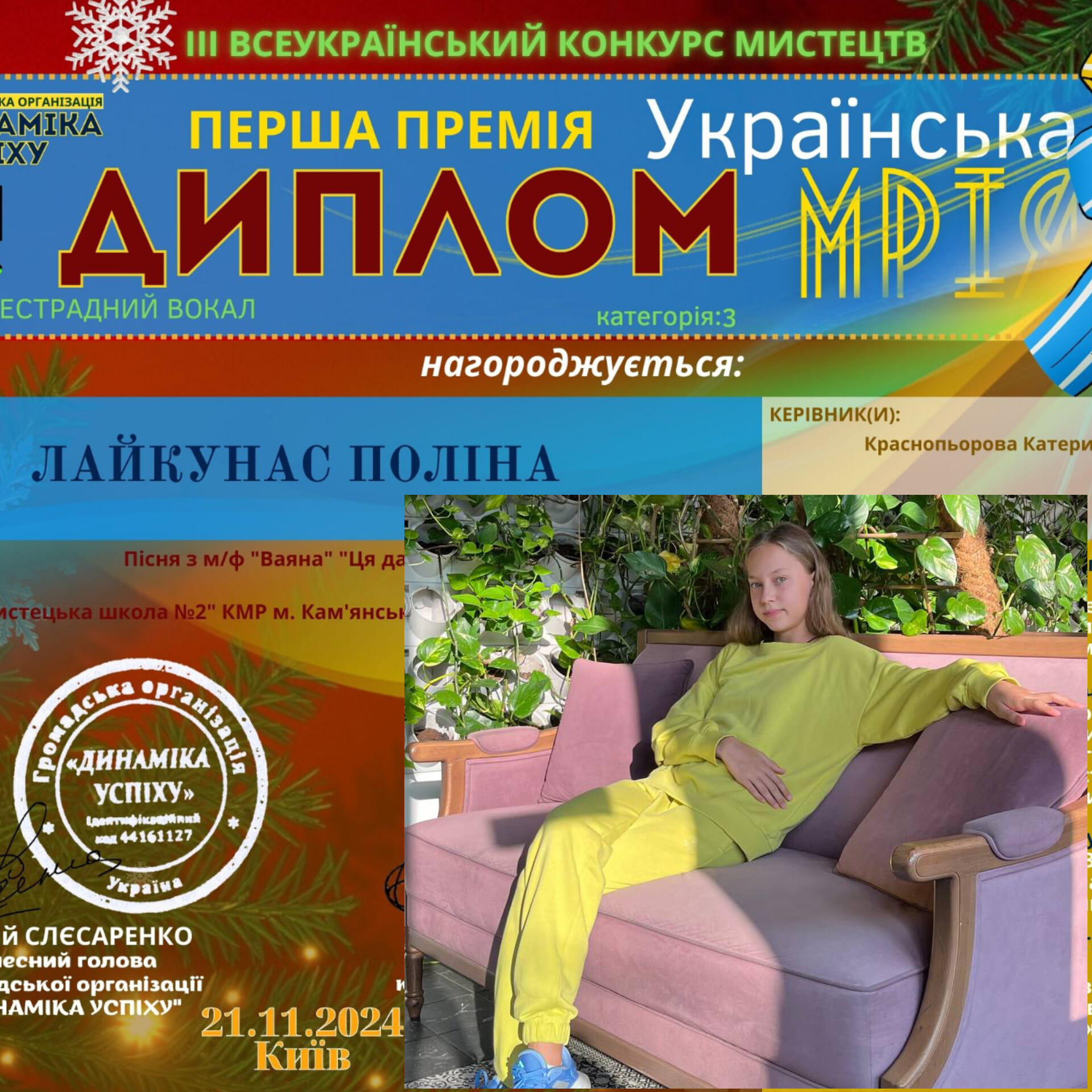 З 6 по 21 листопада у Києві проводився ІІІ Всеукраїнський конкурс мистецтв “Українська мрія”. Його організатором виступила ГО “Динаміка успіху”.