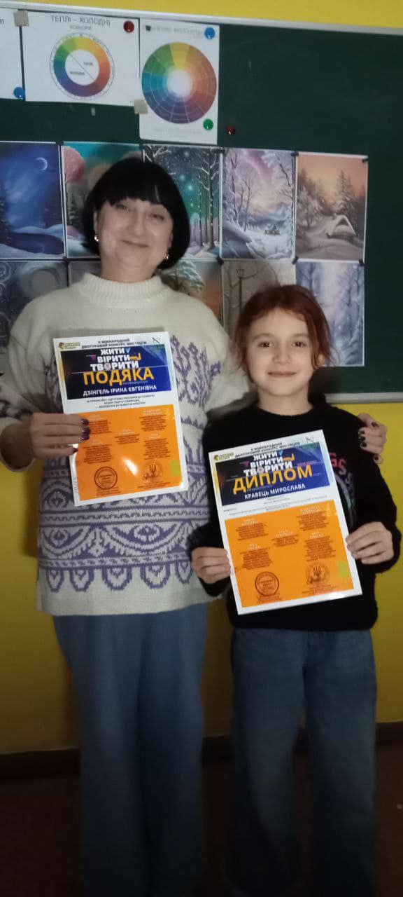 1. Дарʼя Лиганова – диплом лауреата ІІ премії за творчу роботу “Мої теплі мрії” (номінація “Живопис”);