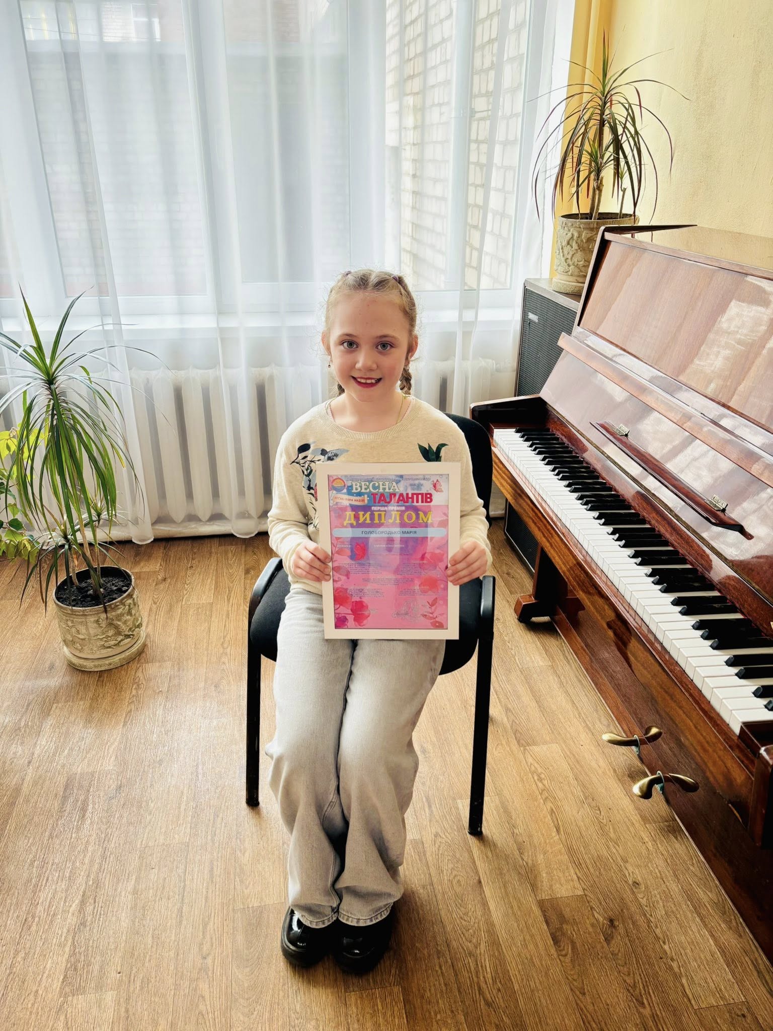 Відзначимо успіх ще одної учениці фортепіанного відділу – Марії Голобородько – на ІІ Міжнародному двотуровому конкурсі мистецтв «Весна талантів», що відбувся 5 березня. Його проводив Центр культурних та освітніх програм. Конкурсанти змагалися у різних творчих номінаціях (вокал, хореографія, інструментальне виконання, театральне та образотворче мистецтво).