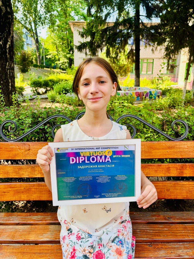 Анастасія Задорожня продемонструвала свої музичні здібності у номінації “Фортепіано” і була відзначена дипломом другої премії. Підготовка до конкурсу проходила під керівництвом викладача Ксенії Зубріліної, яка допомогла Анастасії розкрити потенціал та показати високий рівень виконавської майстерності.