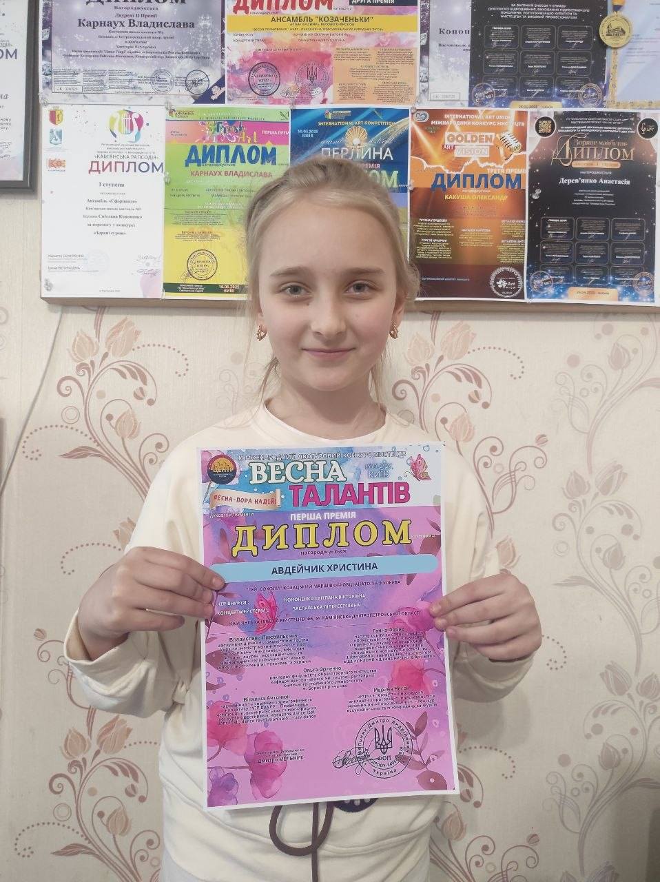 Христина Авдейчик перемогла на ІІ Міжнародному двотуровому конкурсі мистецтв «Весна талантів», що відбувся 5 березня у Києві. Організатор — Центр культурних та освітніх програм.