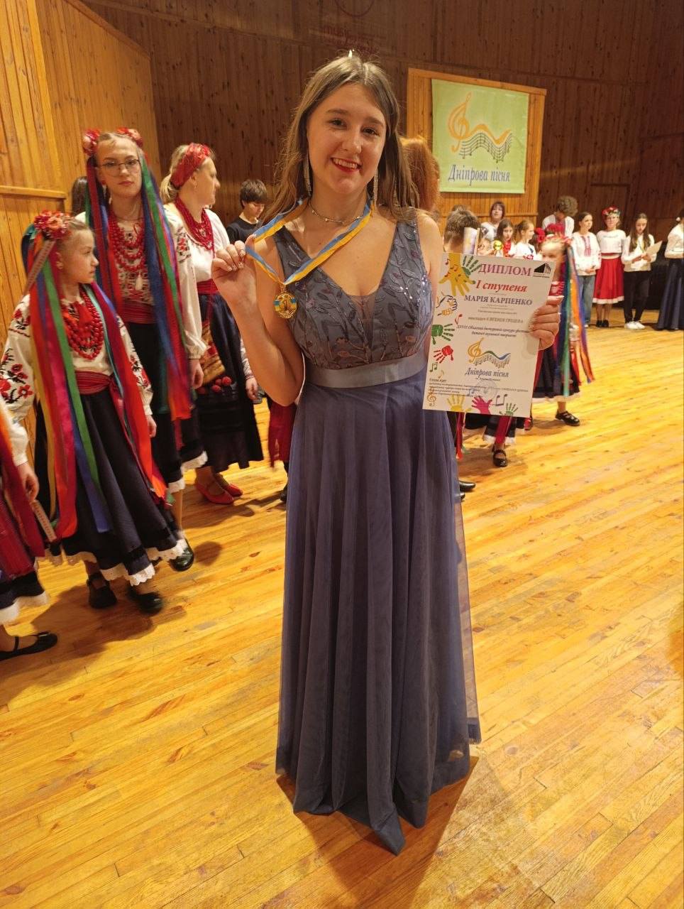 Талановитій дівчинці вручили диплом (перша премія) за виконання козацького машру “Гей, соколи” (в обробці Анатолія Жульєва) у номінації “Духові інструменти”. Для учениці школи ця участь у конкурсі була дебютною.