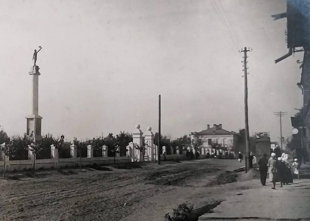 Фото № 1 – зі сховищ колишнього Народного музею ДМК. Фахівці датували його 1927-1929 роками. Будинок № 1 на Гімназичному проспекті (тоді Пеліна) розташований на задньому плані: