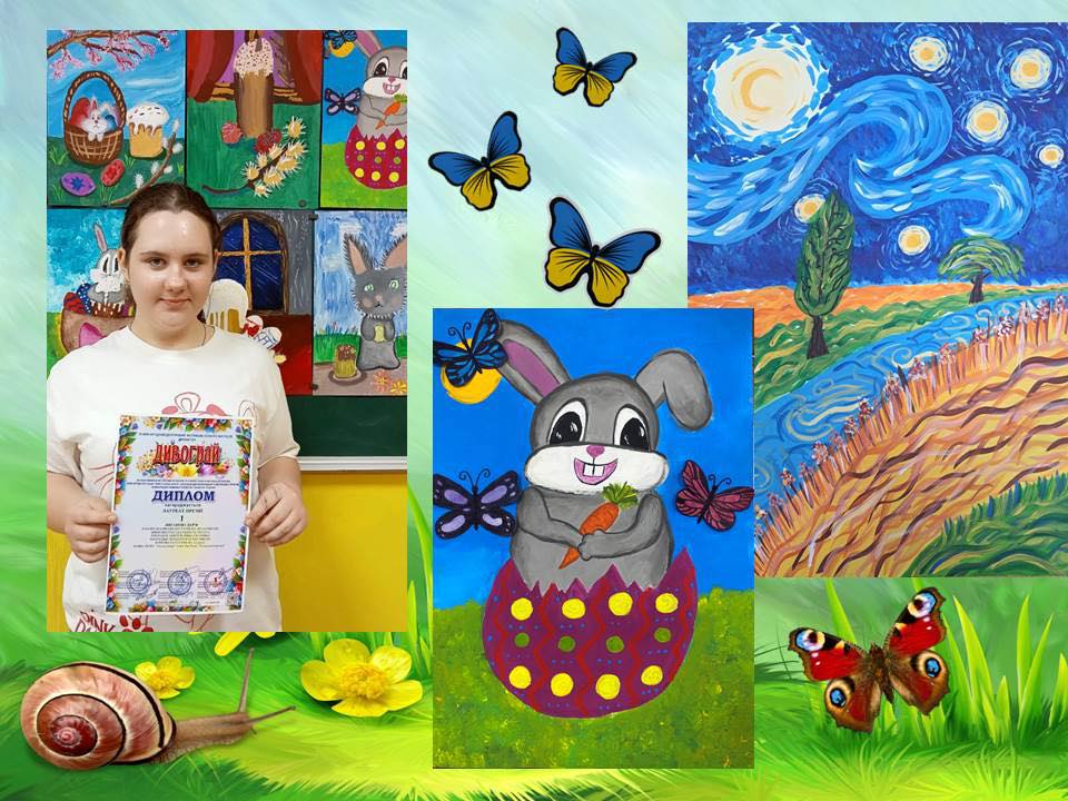 Продовжують вражати учні відділення образотворчого мистецтва (викладач Ірина Дзінгель). З 24 по 27 квітня відбулася феєрична та натхненна подія – ІІІ Міжнародний двотуровий фестиваль-конкурс мистецтв “Дивограй“. Юні художники показали чудові результати: