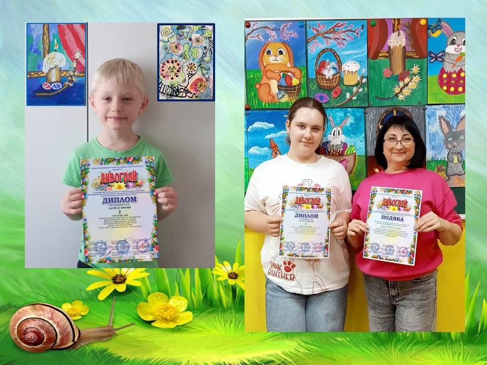 Продовжують вражати учні відділення образотворчого мистецтва (викладач Ірина Дзінгель). З 24 по 27 квітня відбулася феєрична та натхненна подія – ІІІ Міжнародний двотуровий фестиваль-конкурс мистецтв “Дивограй“. Юні художники показали чудові результати: