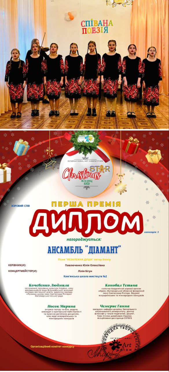 Діти відзначилися чудовими результатами на Міжнародному двотуровому конкурсі мистецтв “Christmas star”, який відбувся в Києві 16 грудня. Організатор – Міжнародна творча спілка “Art Union”.