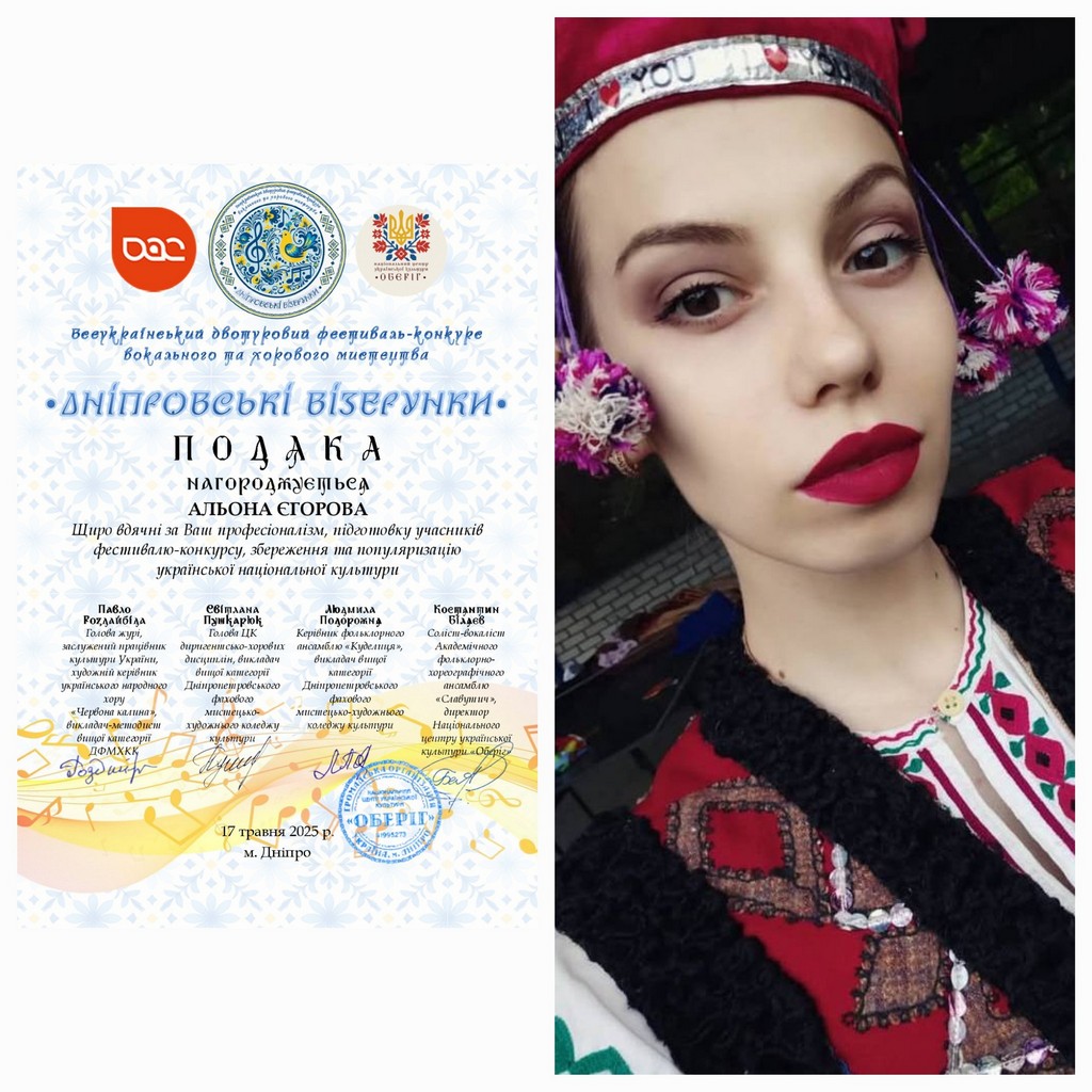 За свій чудовий виступ на сцені “Ягідка” виборола диплом лауреата II ступеня (номінація “Естрадний вокал”). Керівниця вокального ансамблю Анна Чумак та хореограф Альона Єгорова отримали подяки за професіоналізм, підготовку учасників фестивалю-конкурсу, збереження та популяризацію української національної культури. Це не просто перемога, це підтвердження невичерпного таланту, злагодженої роботи та невтомної праці всього ансамблю.