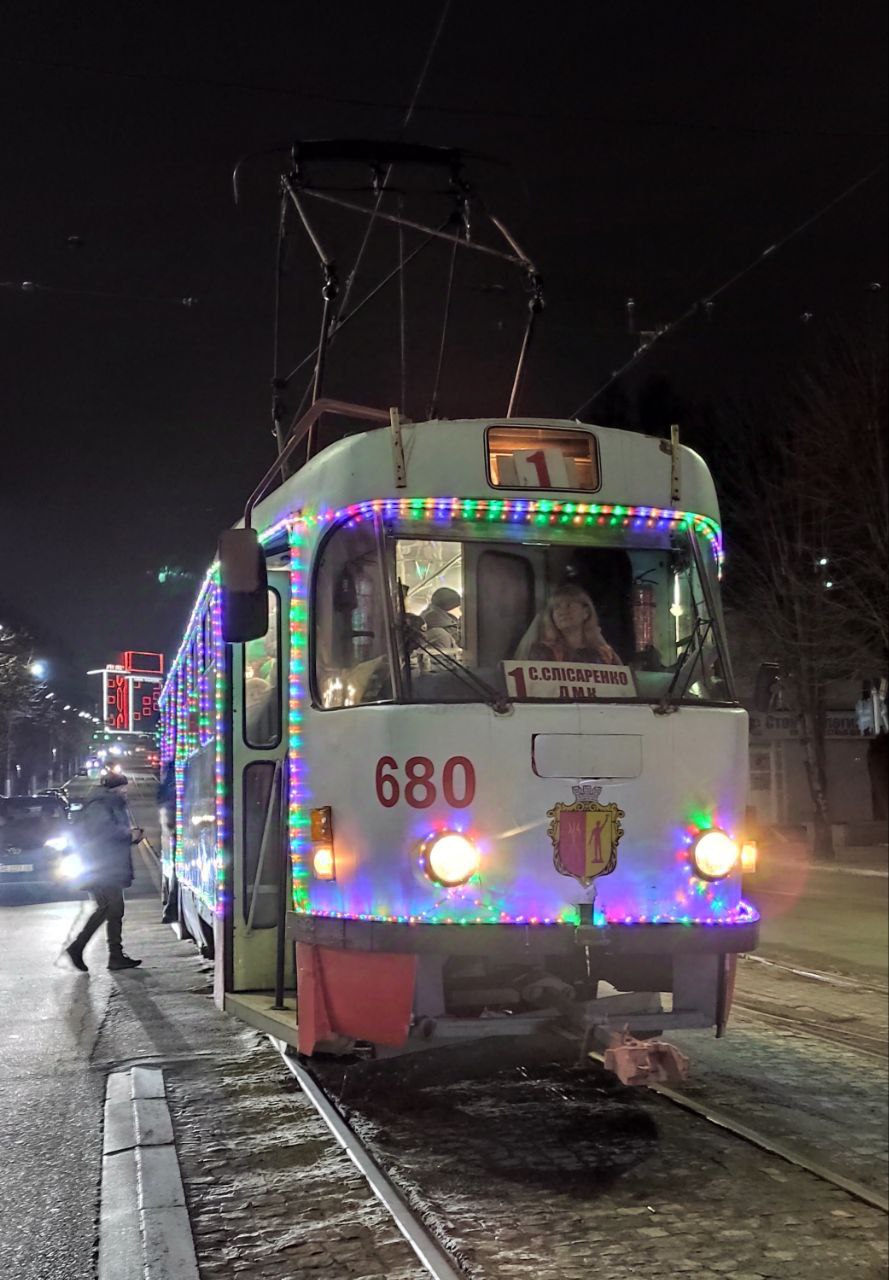 У суботу, 7 грудня, на маршрут № 1 вийшов перший прикрашений гірляндами “різдвяний” трамвай під номером 680. Про це повідомили на КП “Транспорт”.