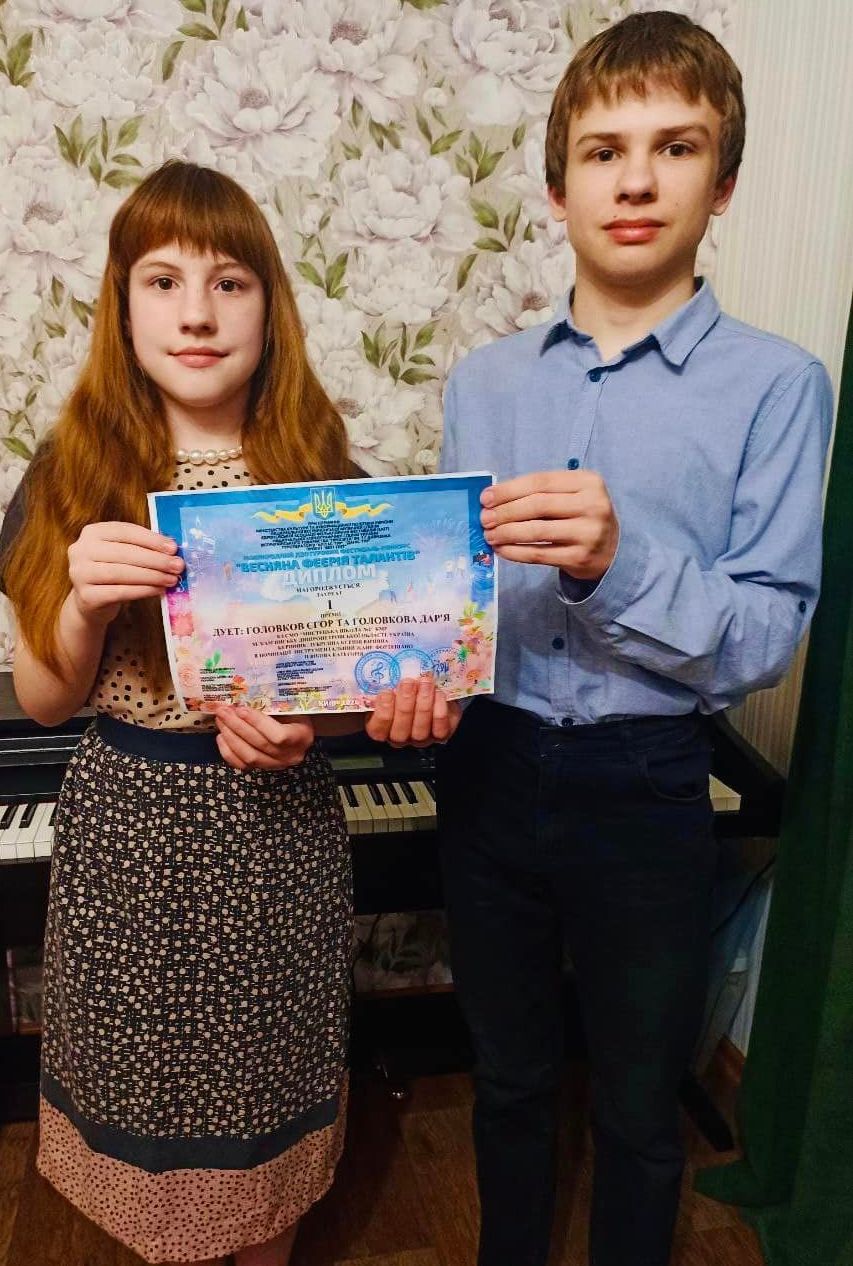 Фортепіанний родинний дует у складі Єгора та Дар’ї Головкових виконав композицію Володимира Івасюка “Я піду в далекі гори” (обробка Міри Шентюрк) і став лауреатом І премії.