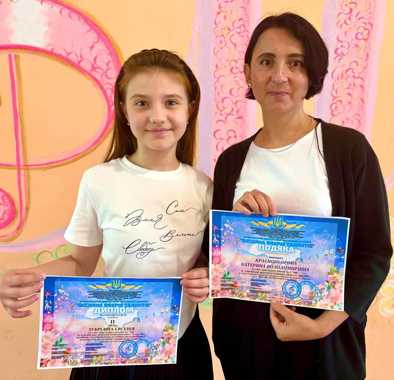 Викладачі Ксенія Зубріліна та Катерина Краснопьорова отримали подяки від організаторів конкурсу за високі професійні здобутки у вихованні творчого потенціалу учасників та їх підготовку до міжнародного фестивалю.