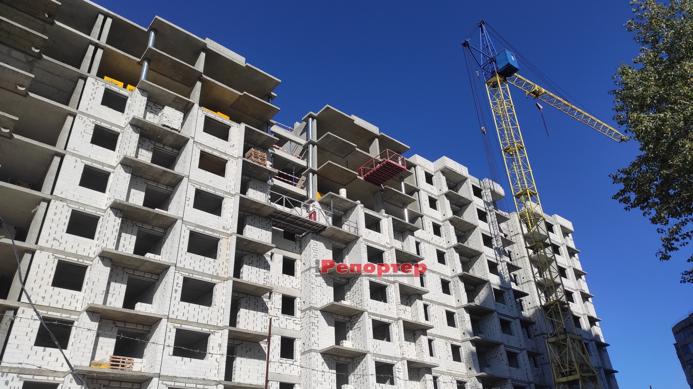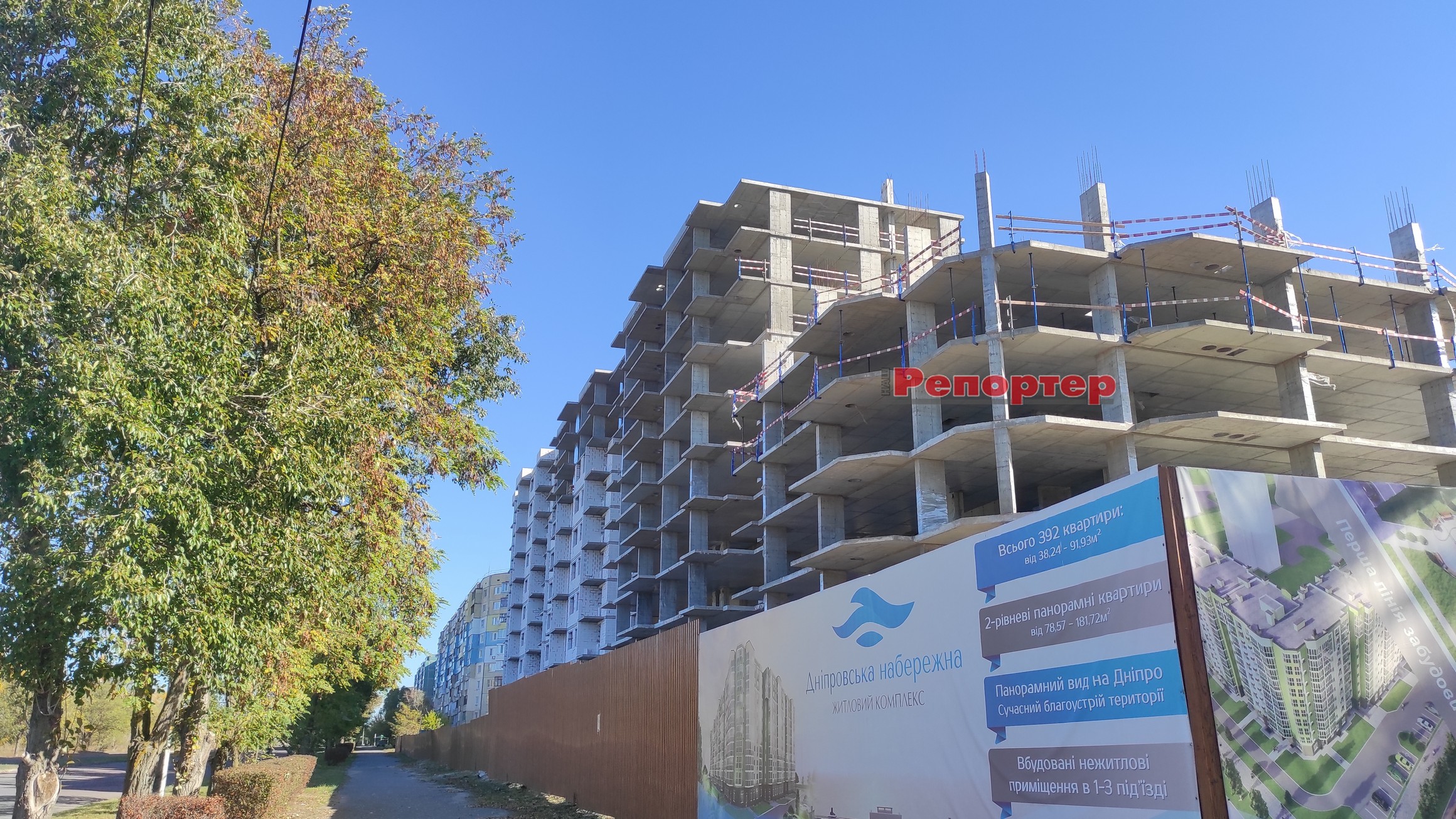 Останні декілька місяців офіційні ресурси забудовника не розміщують фотозвітів про хід будівництва житлового комплексу “Дніпровська набережна”. Ми побували на місці 24 жовтня і можемо констатувати, що на об’єкті ведуться певні роботи, помітна деяка активність. Зокрема, на одному з поверхів побачили робітника, який займається укладкою газоблоку. Щоправда, кран у цей час не працював, але було чутно шум від будівельних інструментів.