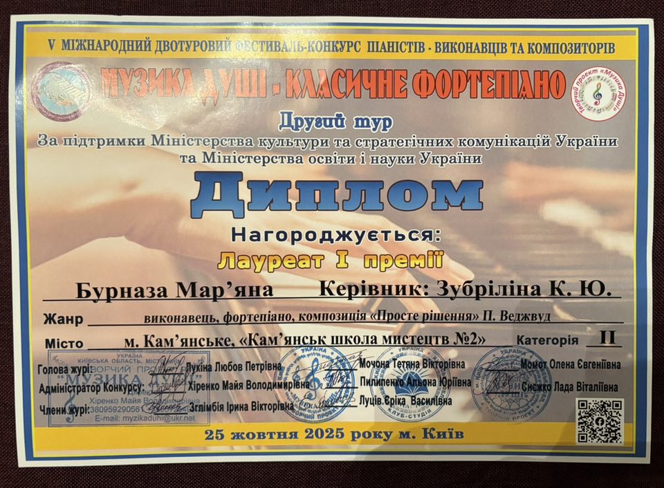 Яскрава перемога маленької піаністки з Кам’янського на міжнародному конкурсі