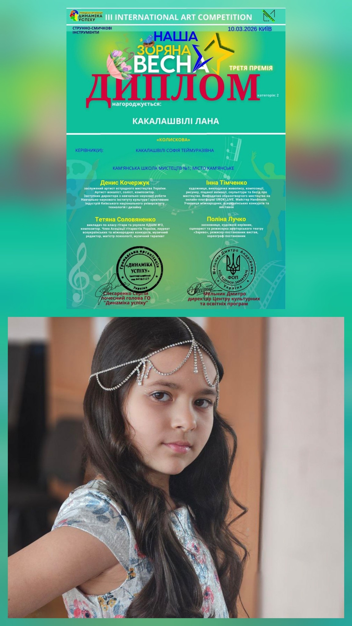 У Кам’янській школі мистецтв № 1 з радістю повідомляють про чудове досягнення учениці інструментального відділу Лани Какалашвілі.