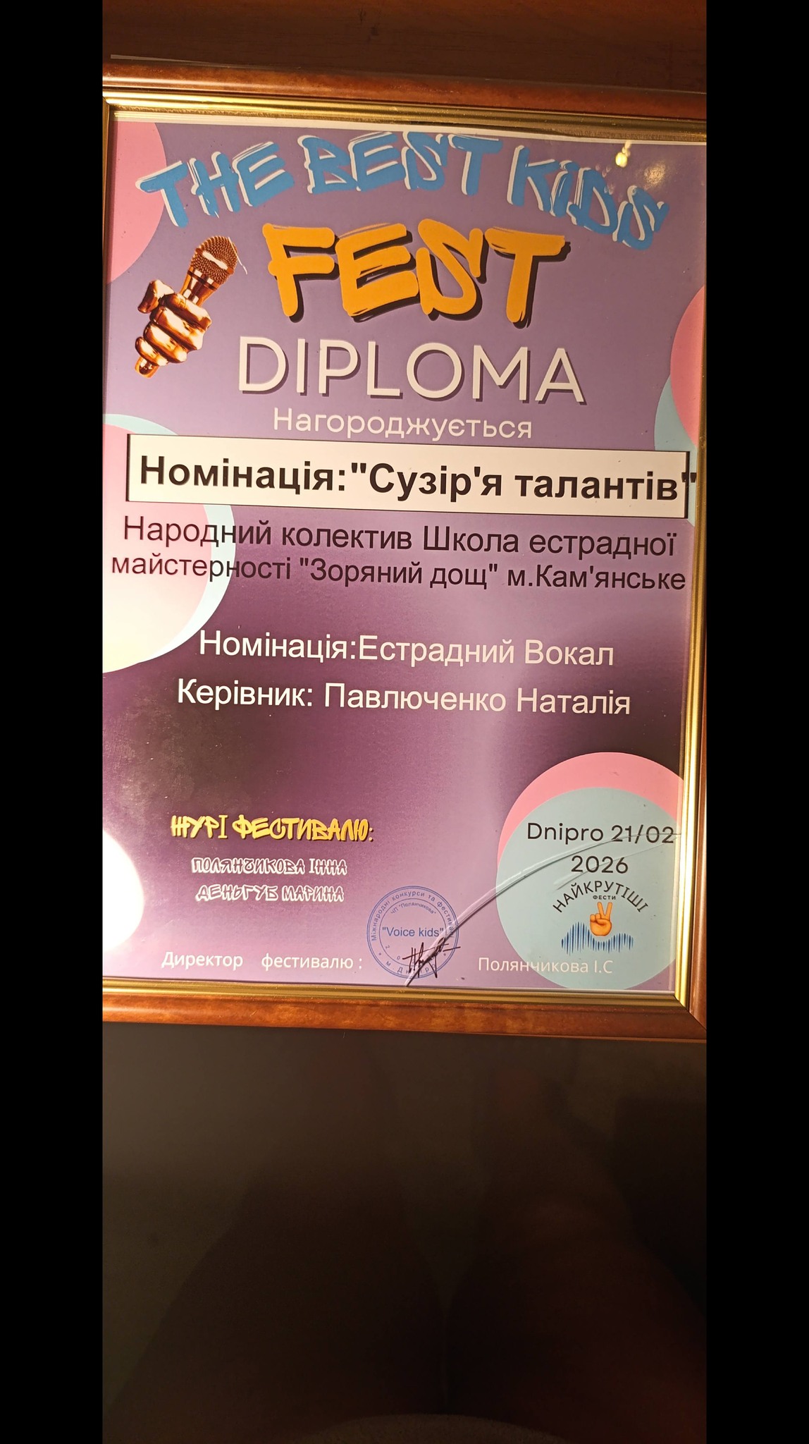 Ми щиро вітаємо юних зірок, їхню наставницю та батьків із цими блискучими здобутками! Віримо, що попереду на “Зоряний дощ” чекає ще чимало гучних перемог та нових творчих обріїв.