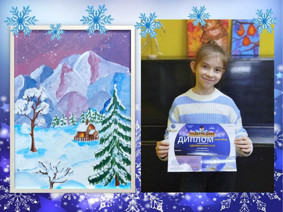 2. Анастасія Одновол – диплом лауреата І премії, робота “Моя різдвяна мрія”;