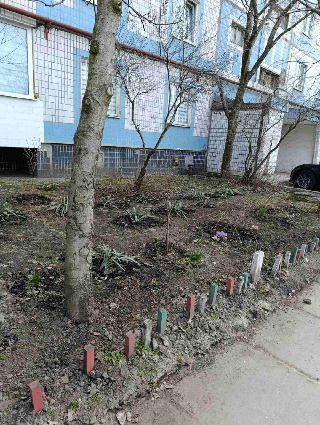 Люди прибрали прибудинкові території, впорядкували клумби та квітники, виконали обрізку гілля дерев, видалили зайву поросль, а також висадили квіти.
