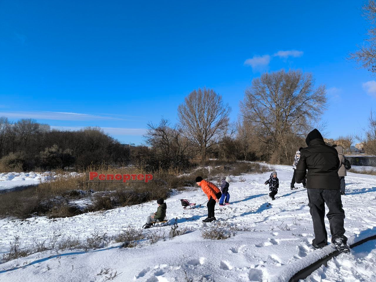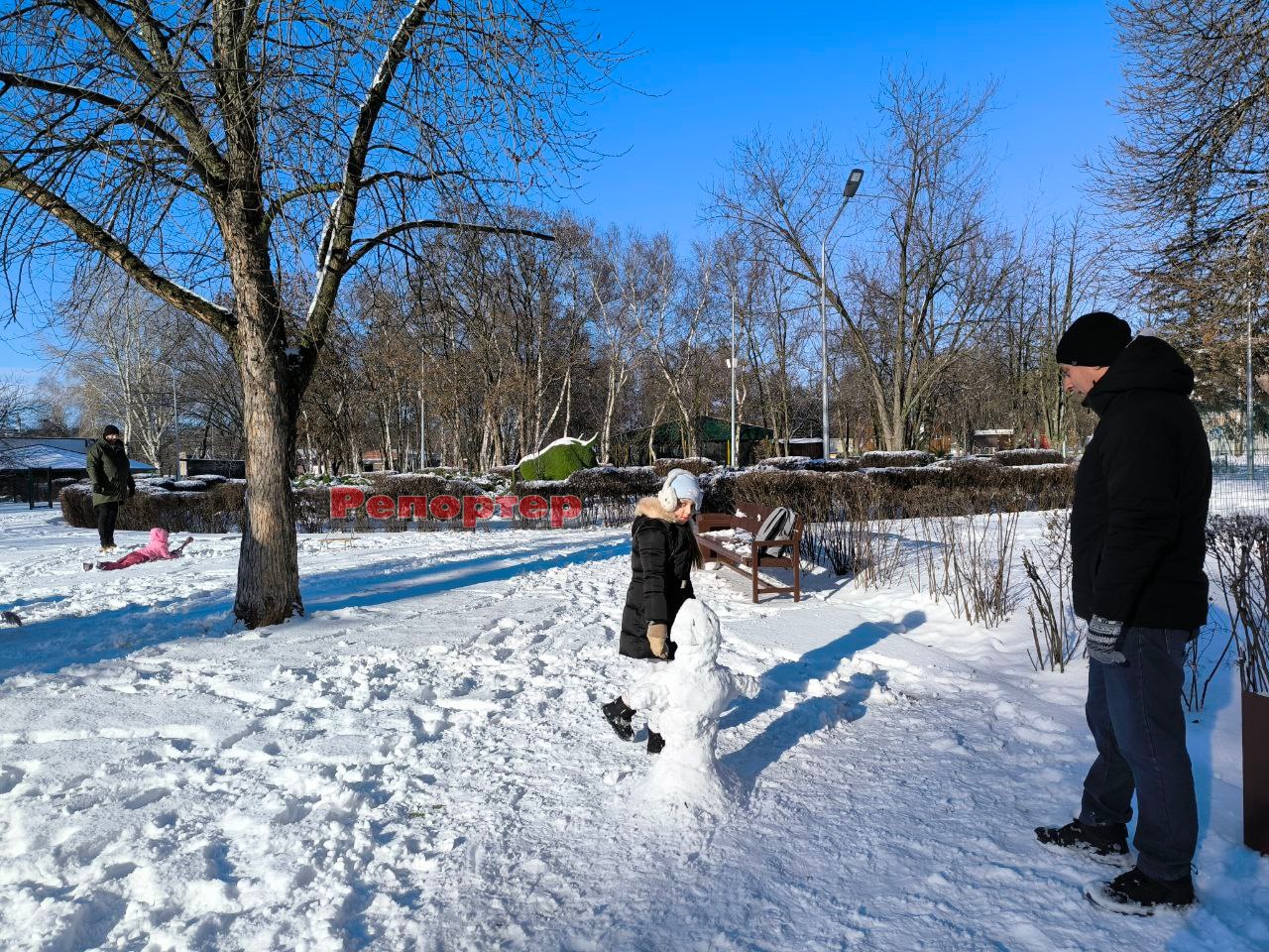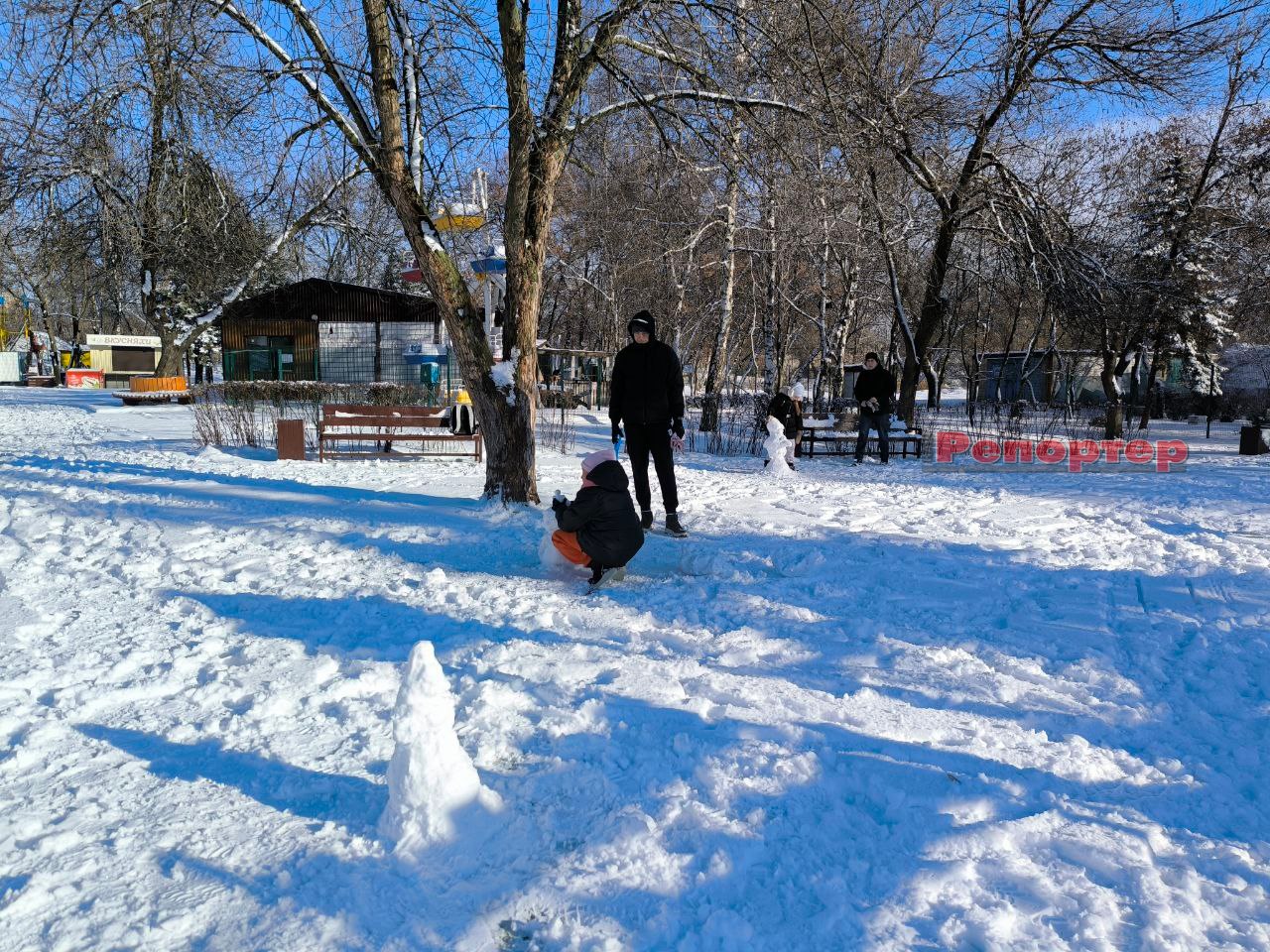 Лівобережний парк, який є одним із найулюбленіших місць відпочинку місцевих жителів, став центром тяжіння для сімей із дітьми. Малеча з азартом опановує зимові забави. Діти ліплять сніговиків під наглядом дорослих.