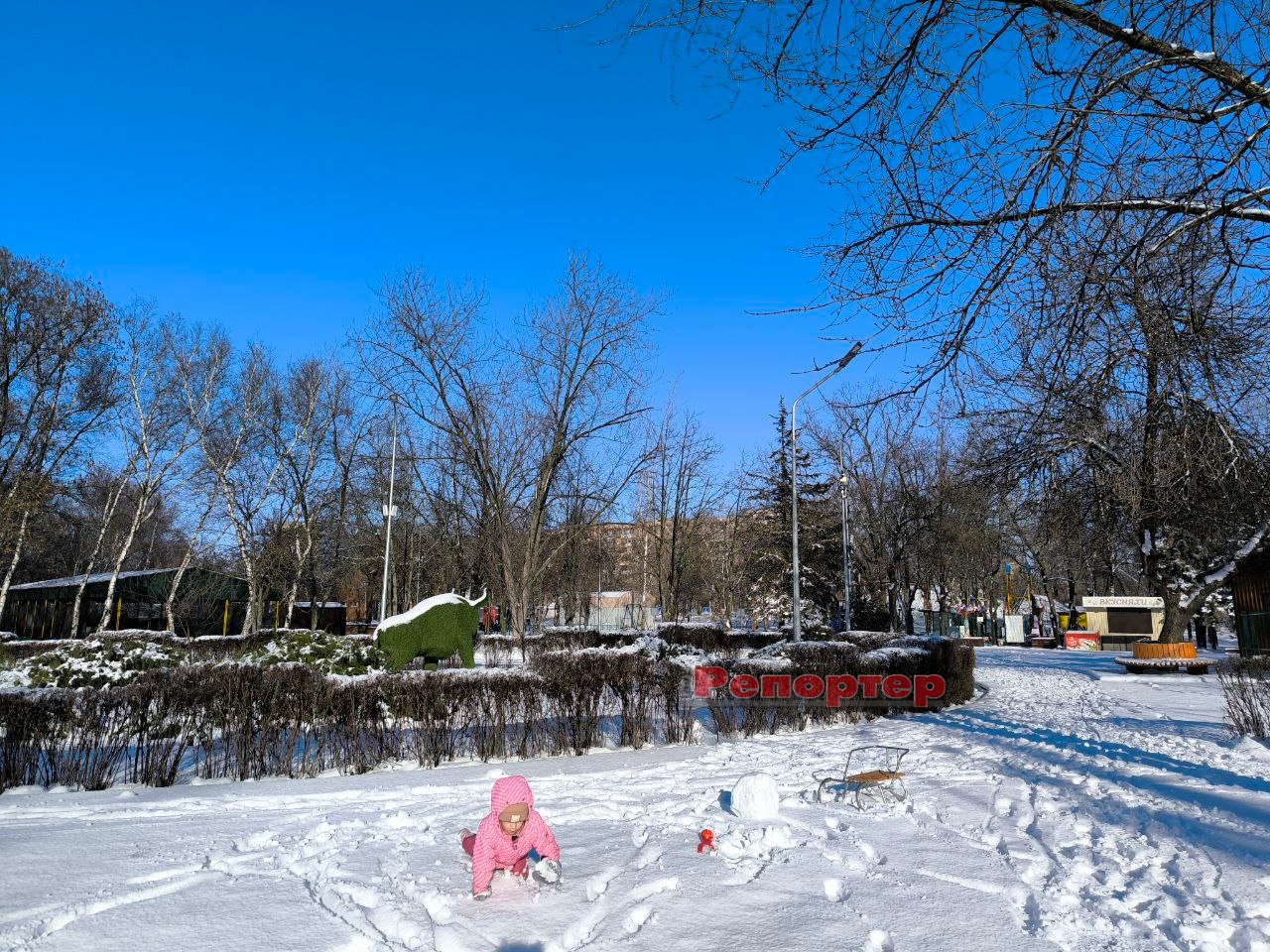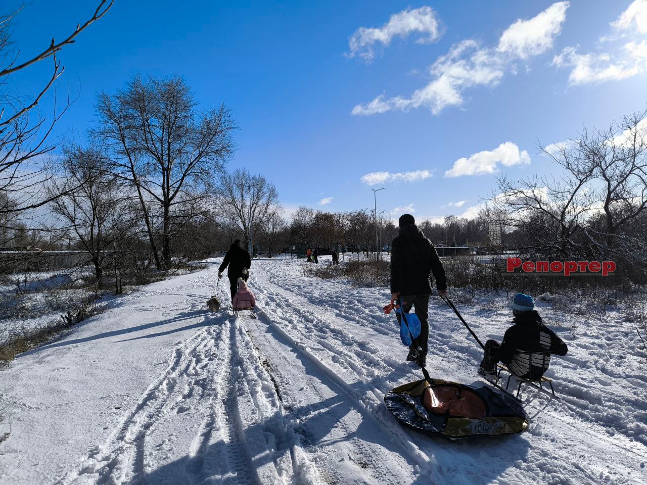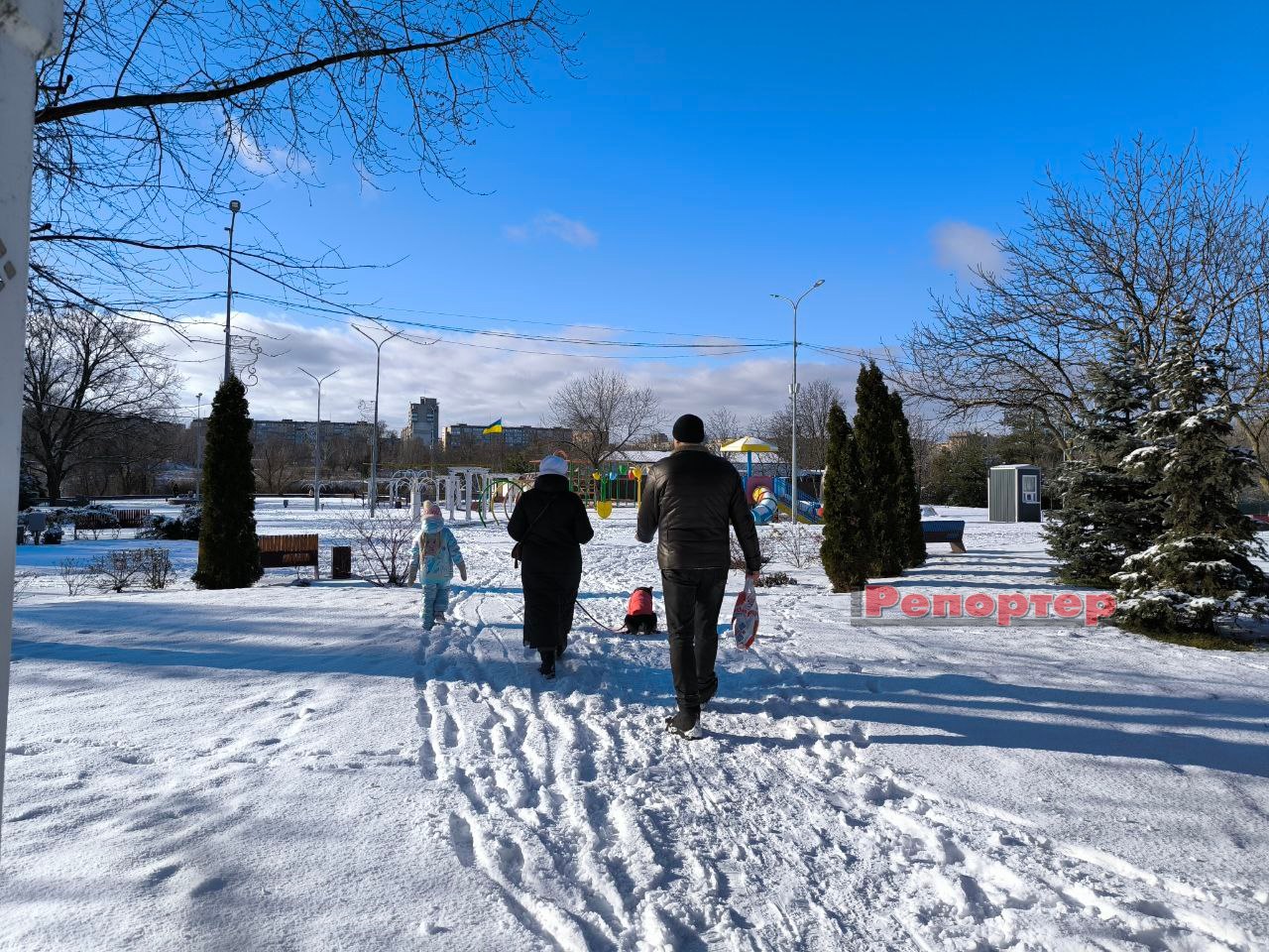 Лівобережний парк, який є одним із найулюбленіших місць відпочинку місцевих жителів, став центром тяжіння для сімей із дітьми. Малеча з азартом опановує зимові забави. Діти ліплять сніговиків під наглядом дорослих.