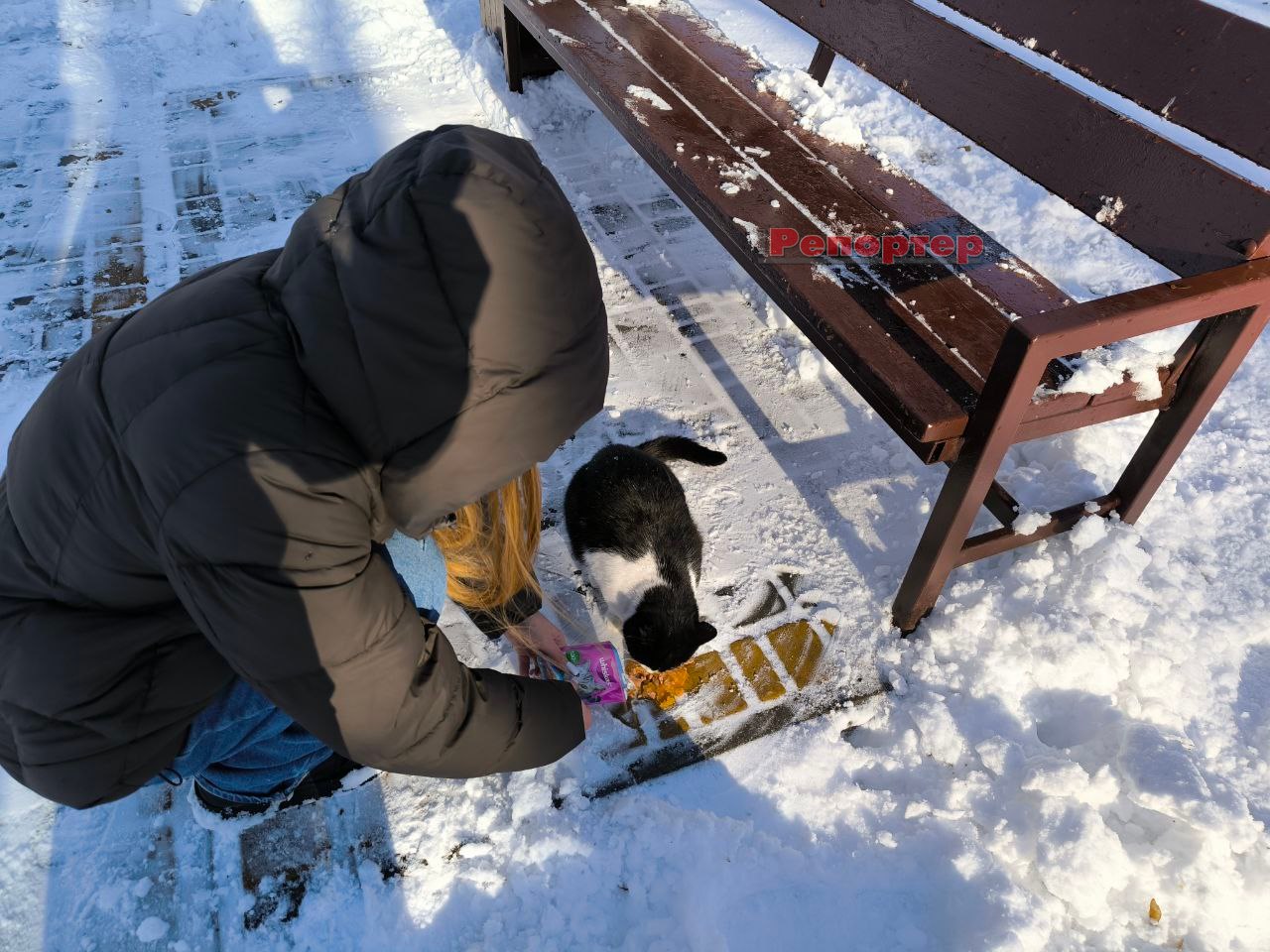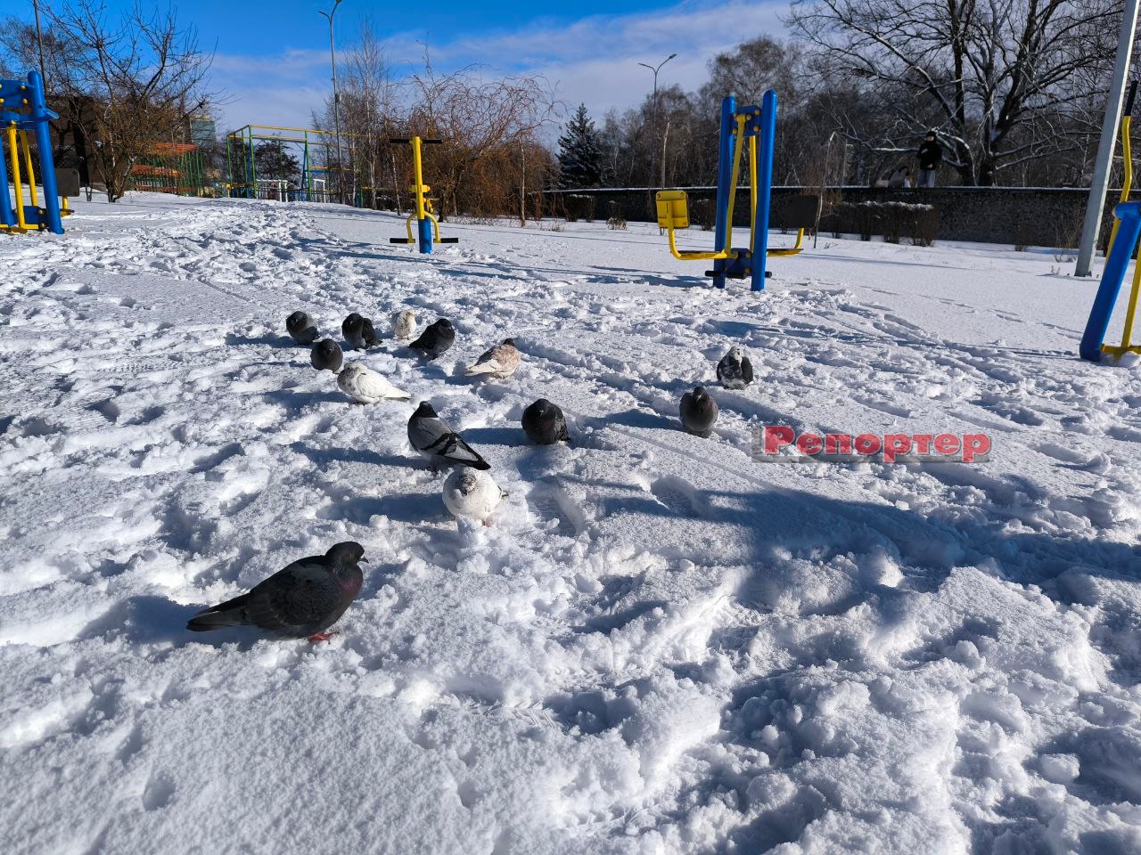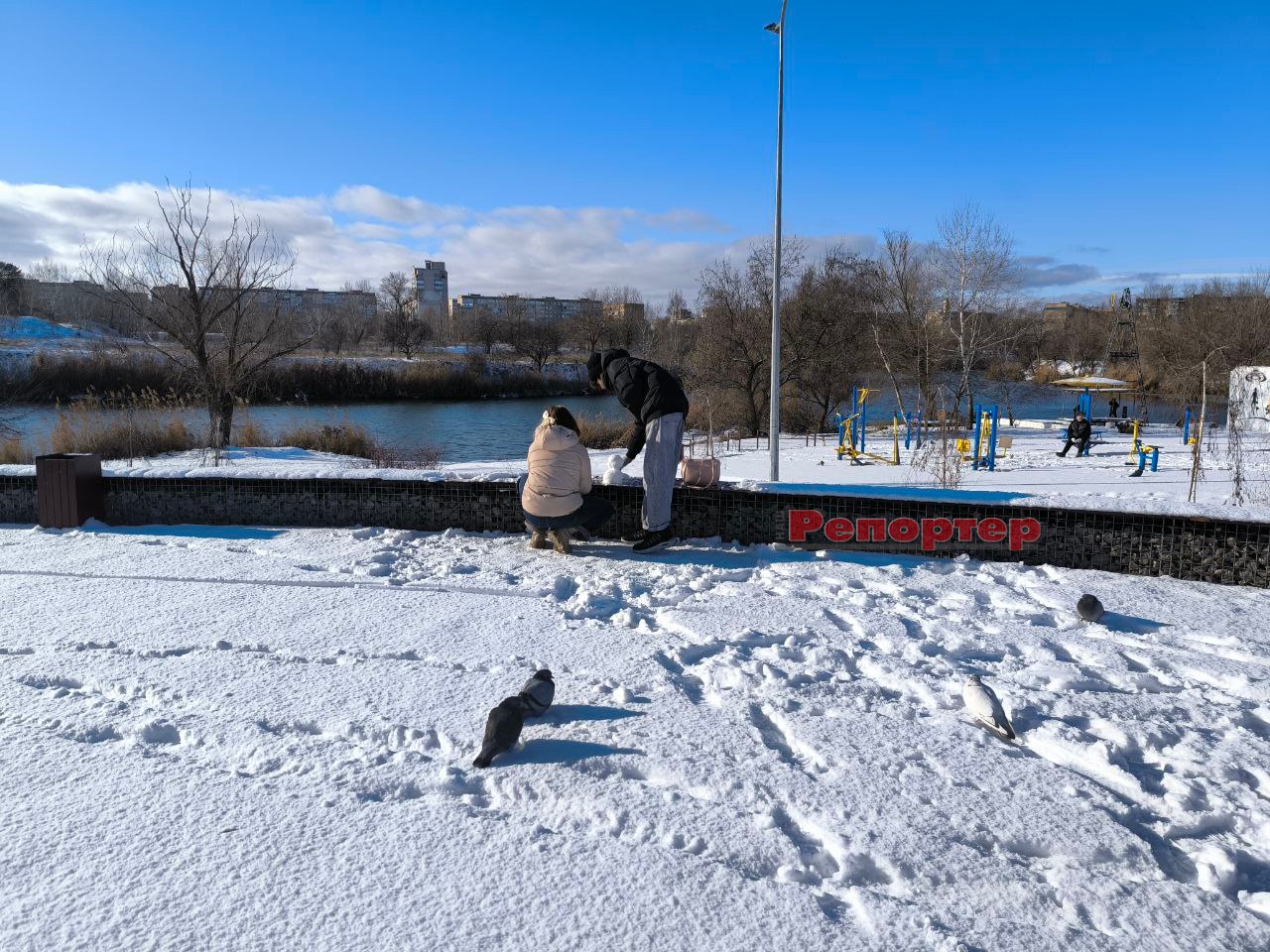 Зима – це не лише веселощі, а й час для добрих справ. Містяни не забувають про мешканців парку: на засніжених алеях люди підгодовують голубів та котів.