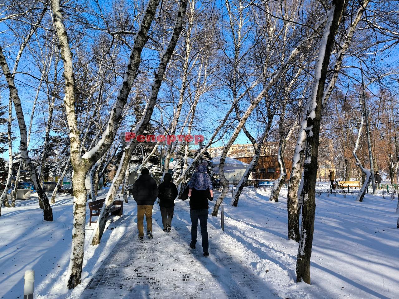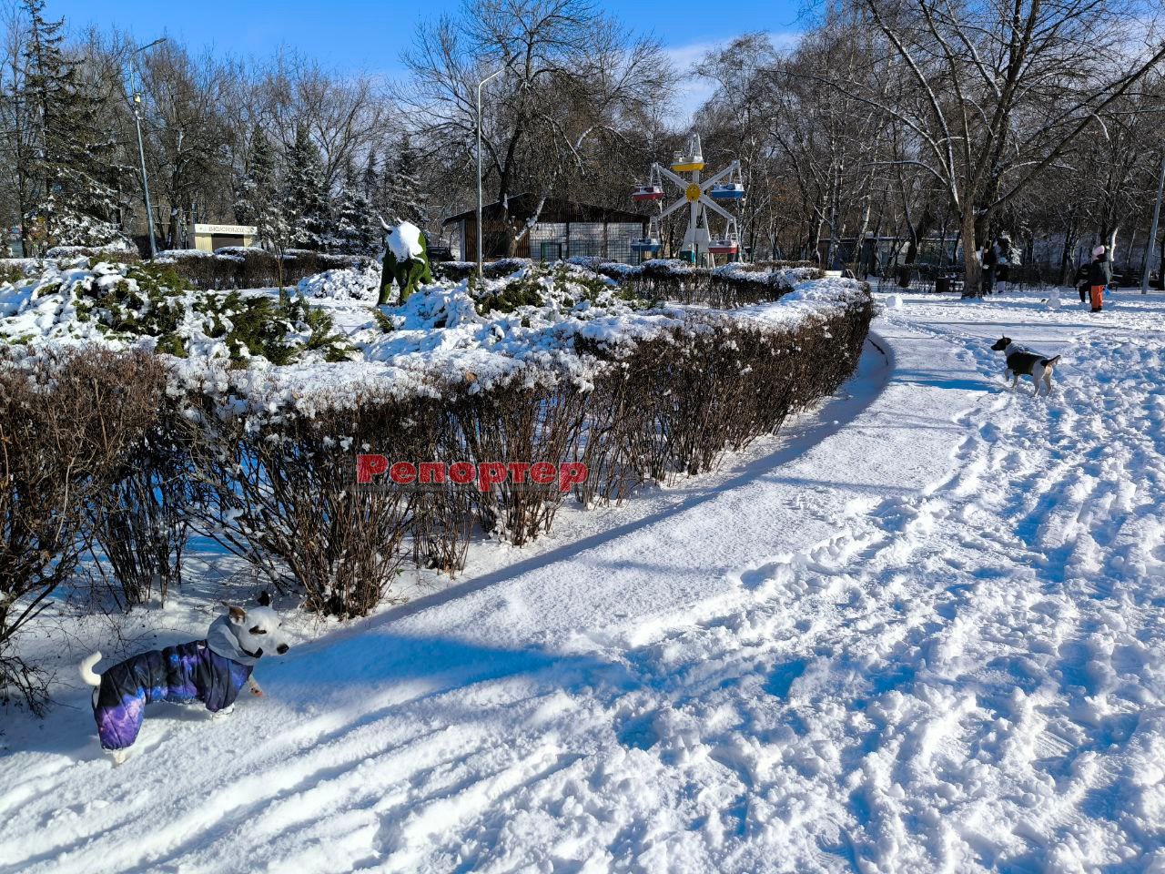 За останні дні випало чимало снігу, вкривши паркові алеї, дерева та майданчики пухкою білою ковдрою. Надворі панує чудова атмосфера, тож люди йдуть відпочити та насолодитися рідкісними сонячними митями на свіжому повітрі.