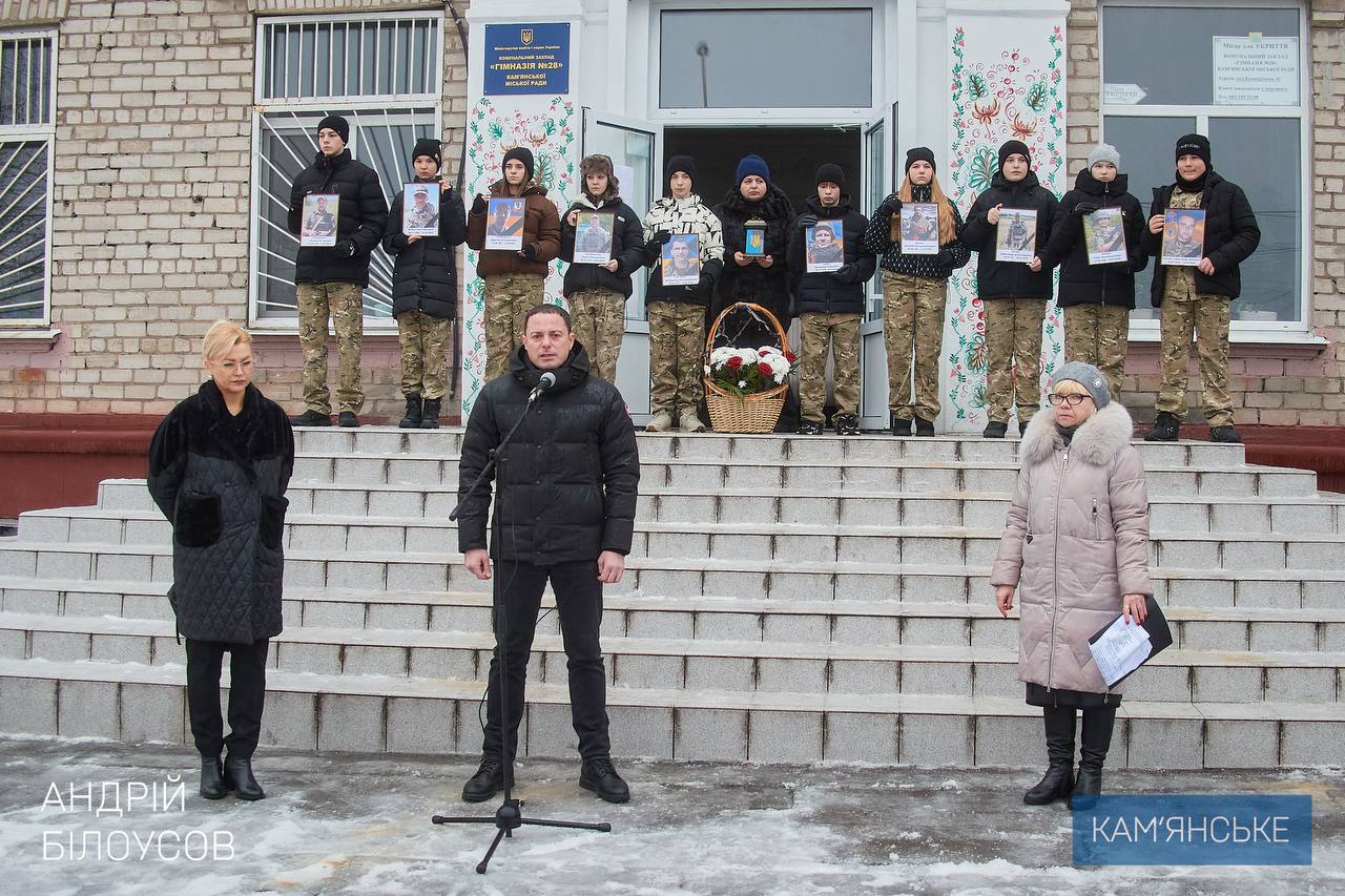 У Кам’янському 6 січня відбулося відкриття меморіалу випускникам гімназії № 28, які віддали свої життя, захищаючи Україну.