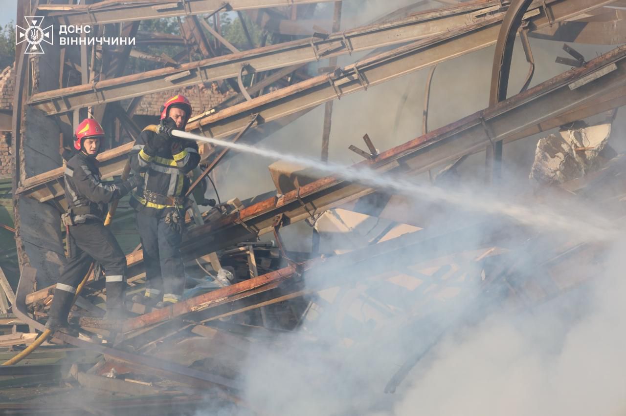 На фото ДСНС рятувальники ліквідовують наслідки атаки у Волинській, Вінницькій, Житомирській, Донецькій областях.